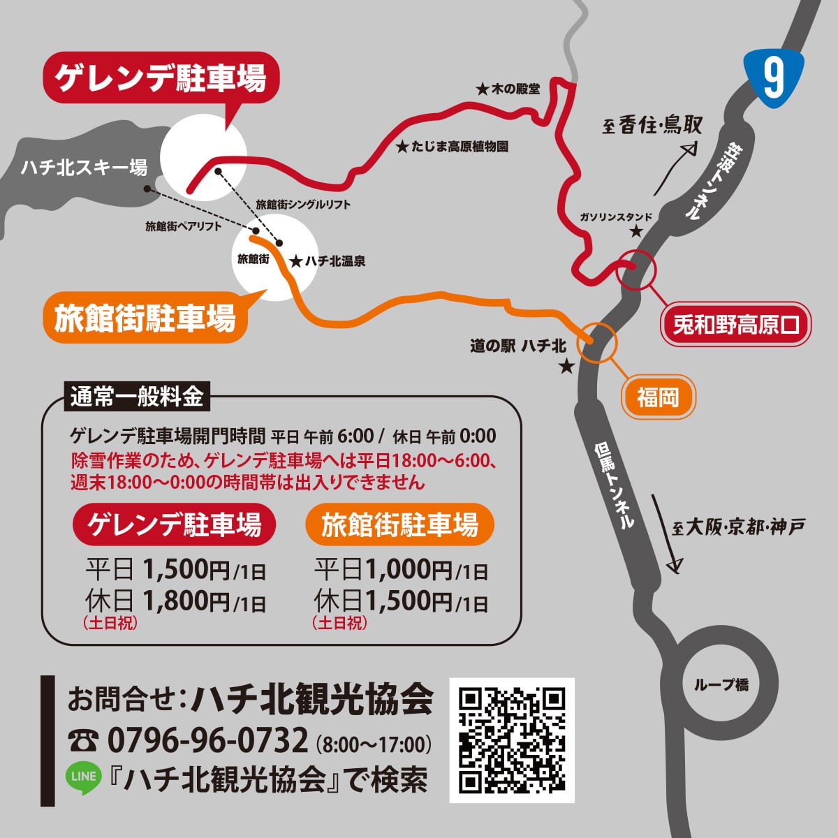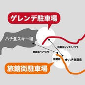 ハチ北スキー場の駐車場は、『ゲレンデ駐車場』と『旅館街駐車場』の2種類がございます。